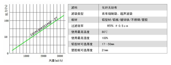 可更換F7級袋式中效過濾器風(fēng)阻圖