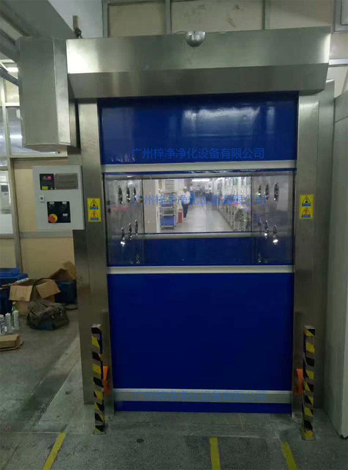 快速卷簾門(mén)貨淋室主要是方便推車、輸送帶傳遞物料時(shí)實(shí)現(xiàn)自動(dòng)化控制、除塵的空氣凈化設(shè)備,快速卷簾門(mén)貨淋室前門(mén)和后門(mén)設(shè)置為互鎖狀態(tài)。