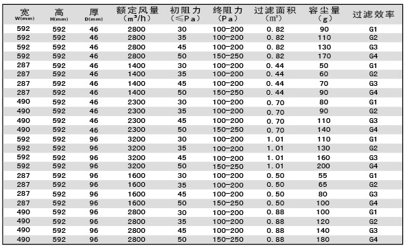 子母架初效過濾器制做材料及運(yùn)行條件描述: