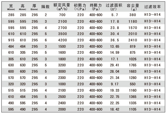 組合式耐高濕高效空氣過濾器技術(shù)參數(shù)