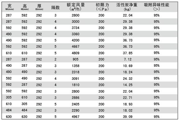組合式活性炭高效過濾器參數(shù)說明:
