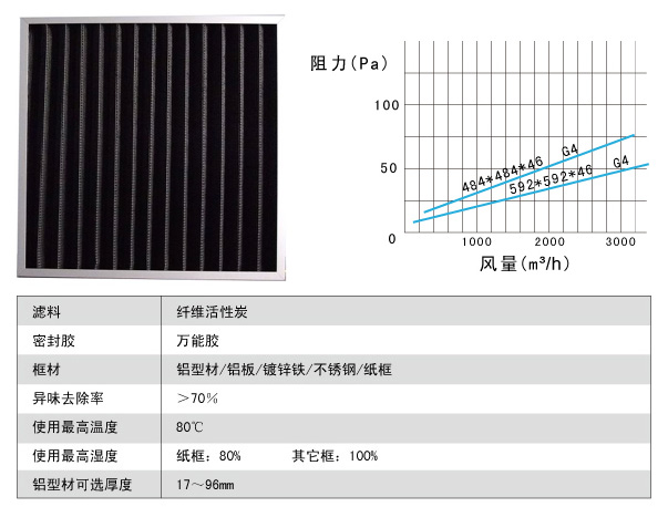板式初效活性炭過濾器特性: