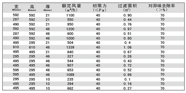 用戶選購指南-板式初效活性炭過濾器技術(shù)參數(shù)