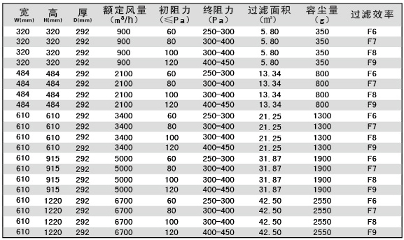用戶選購指南-箱式中效過濾器技術參數(shù)